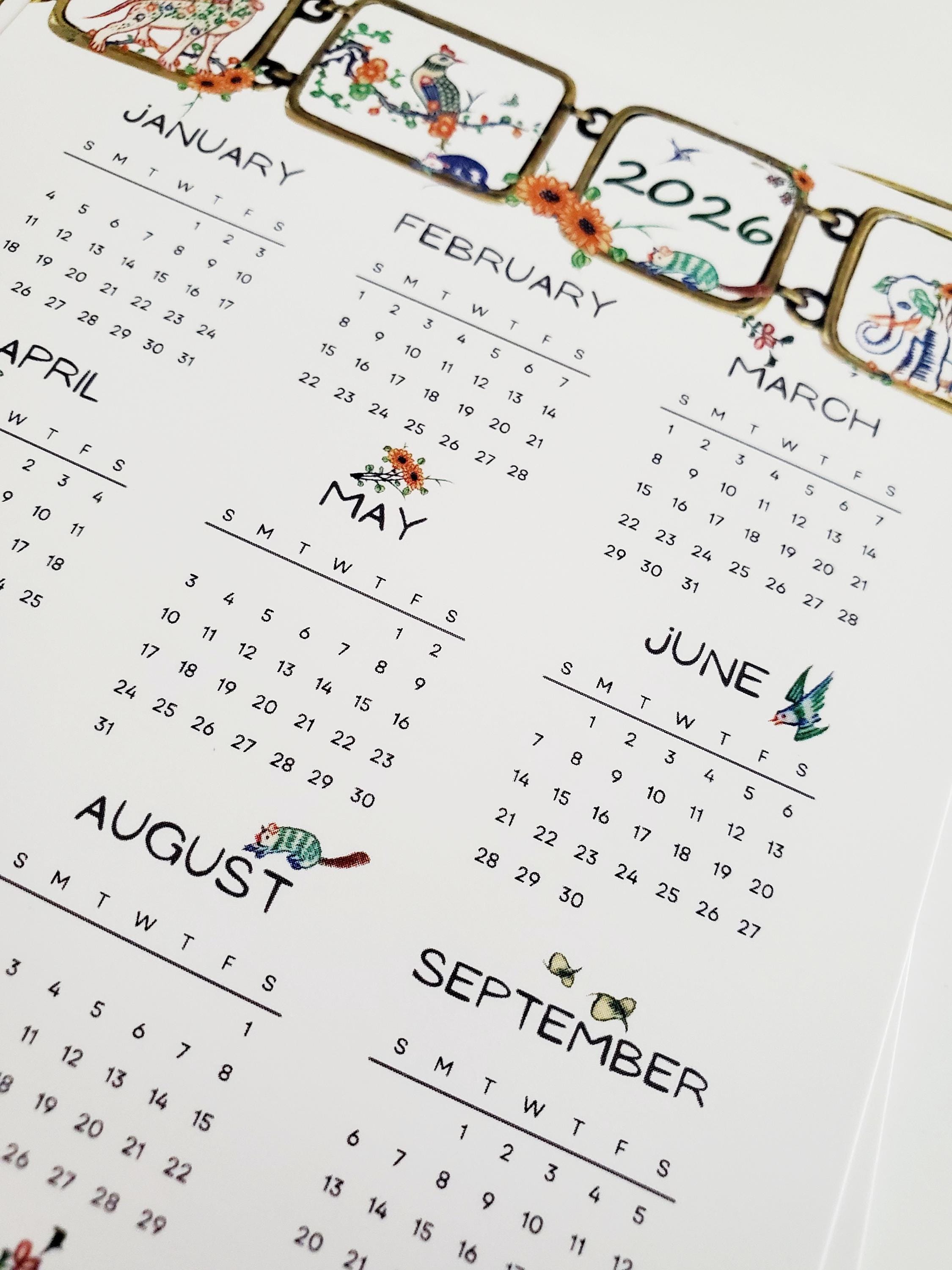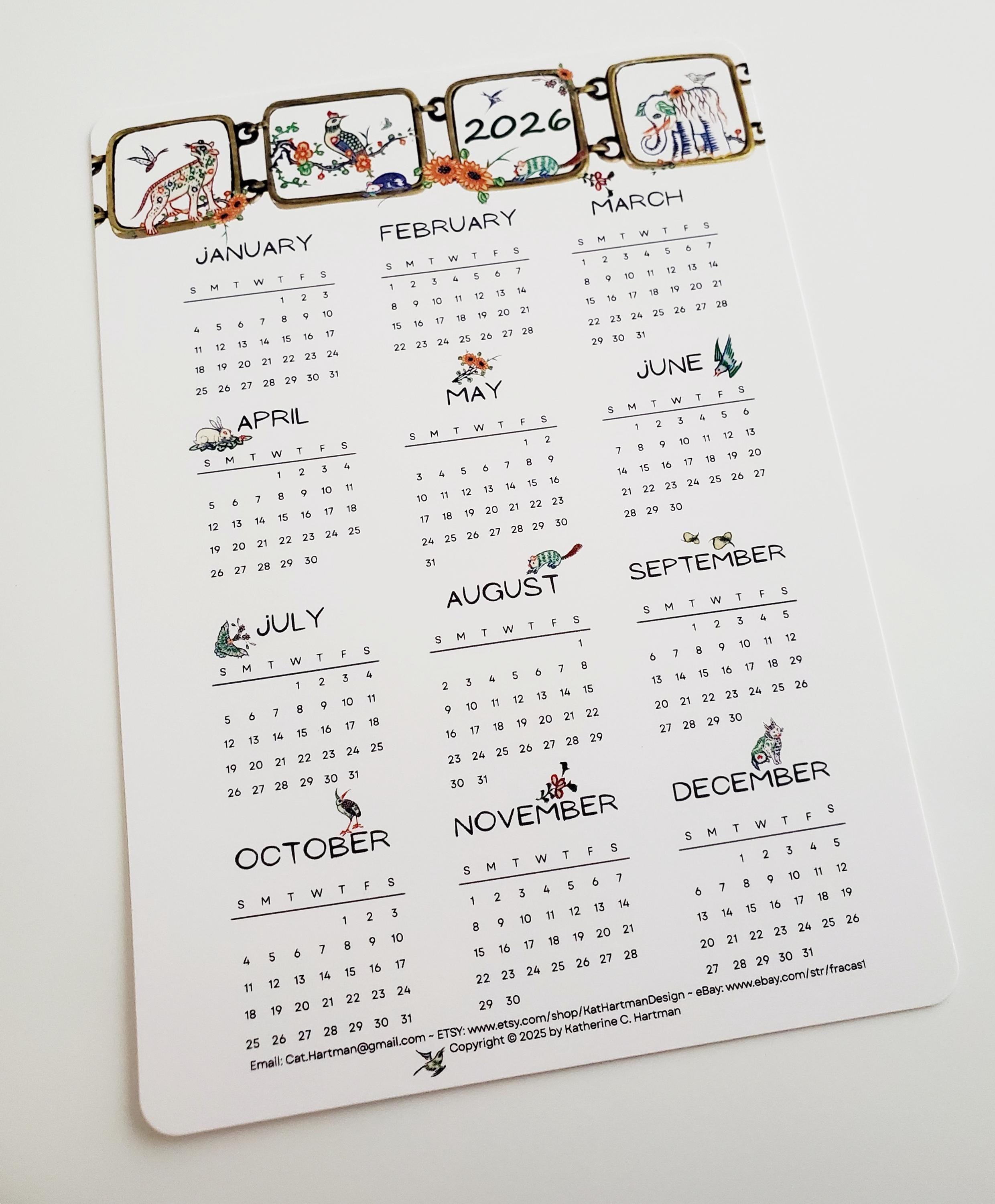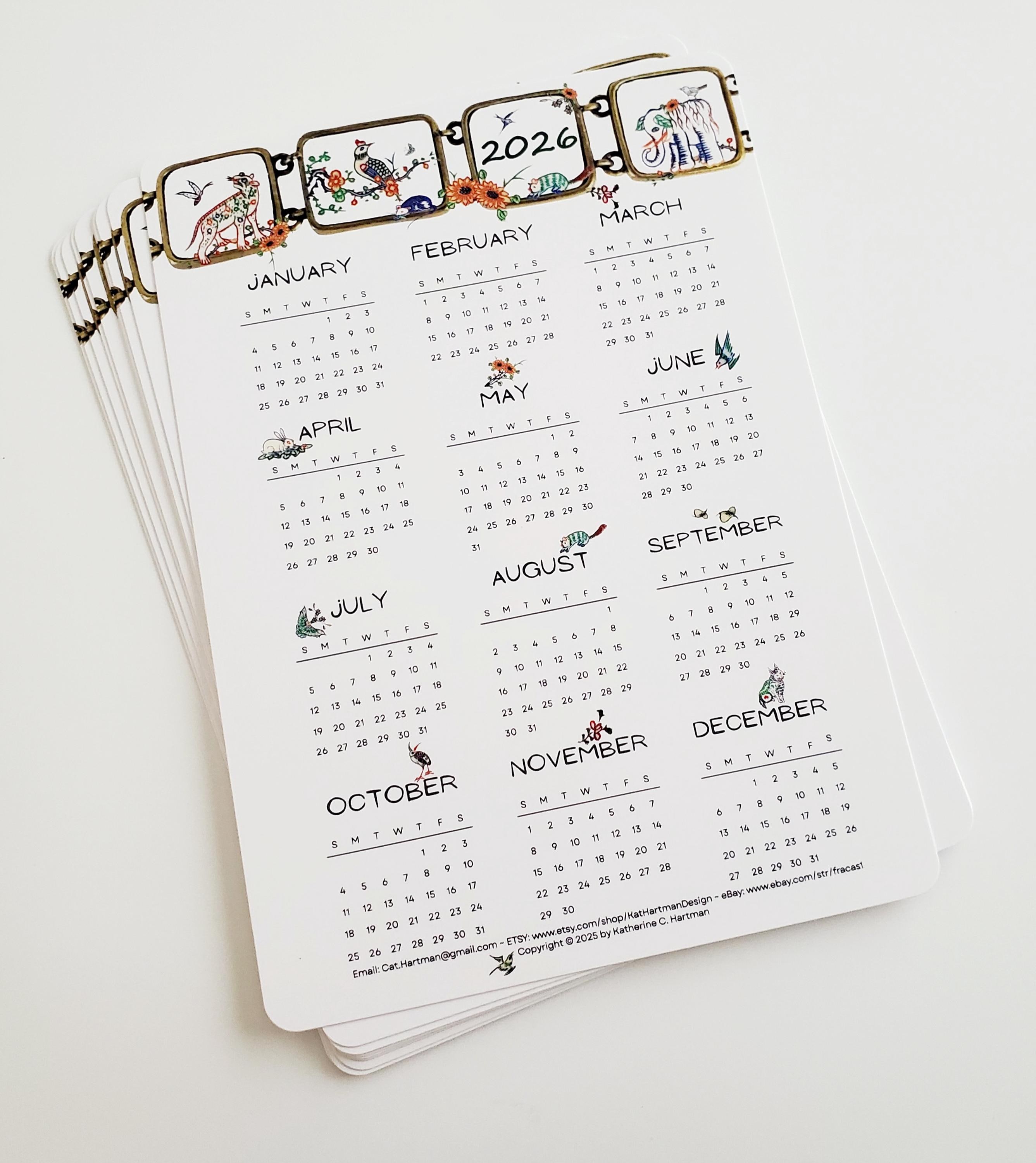 Postcard calendar with the entire year, 2026. Featuring colorful mahjong tiles on the top side. Set of ten cards. Printed on heavy, smooth cover paper with a matte finish. Packaged in a cellophane bag.