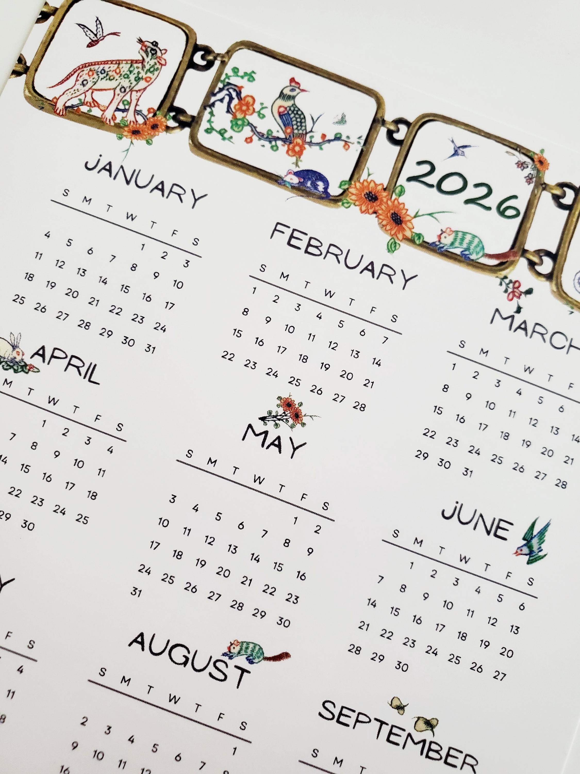 2026 Postcard Calendars, Set of Ten, 10, Vintage Mahjong Tiles