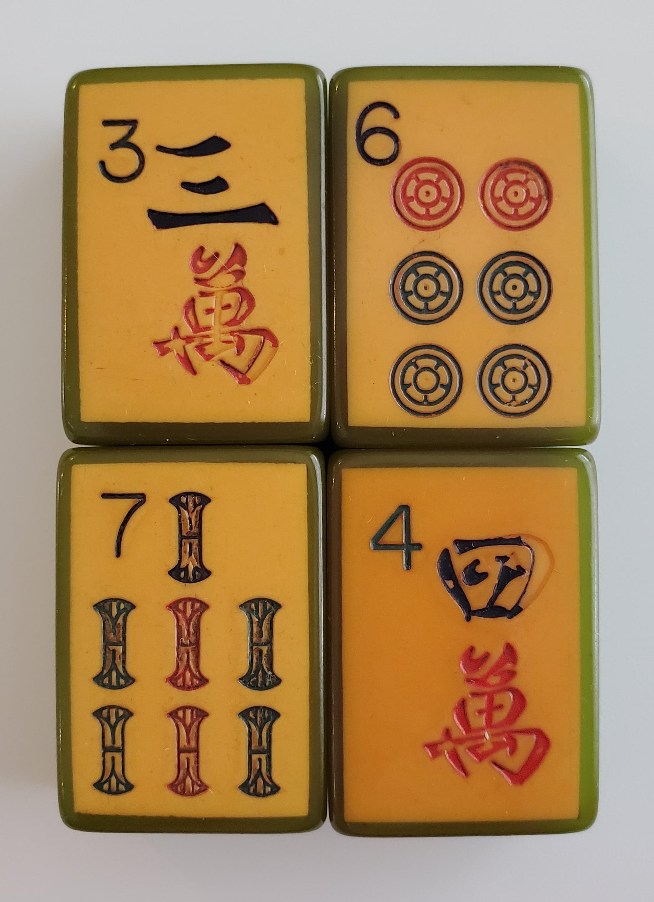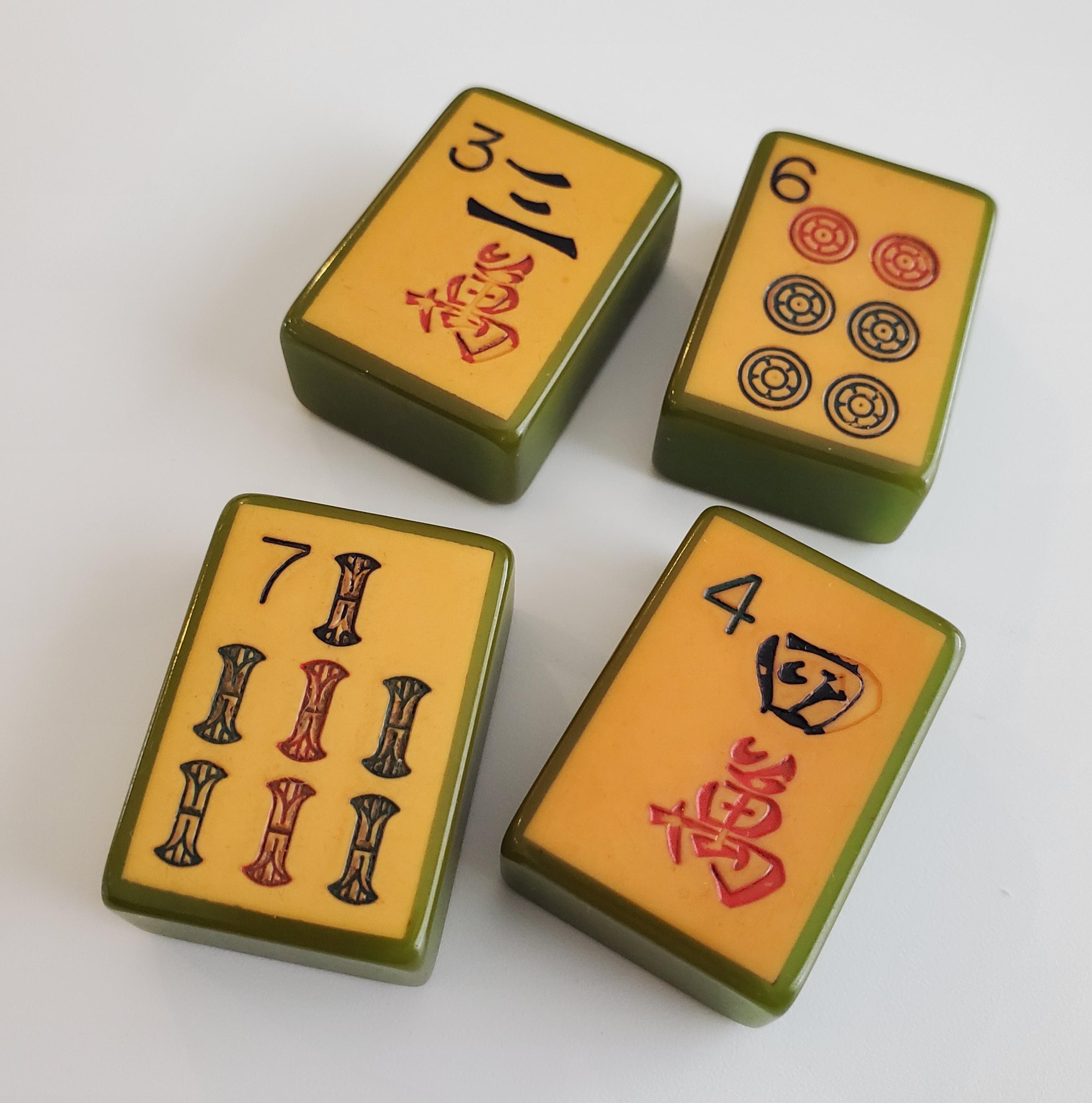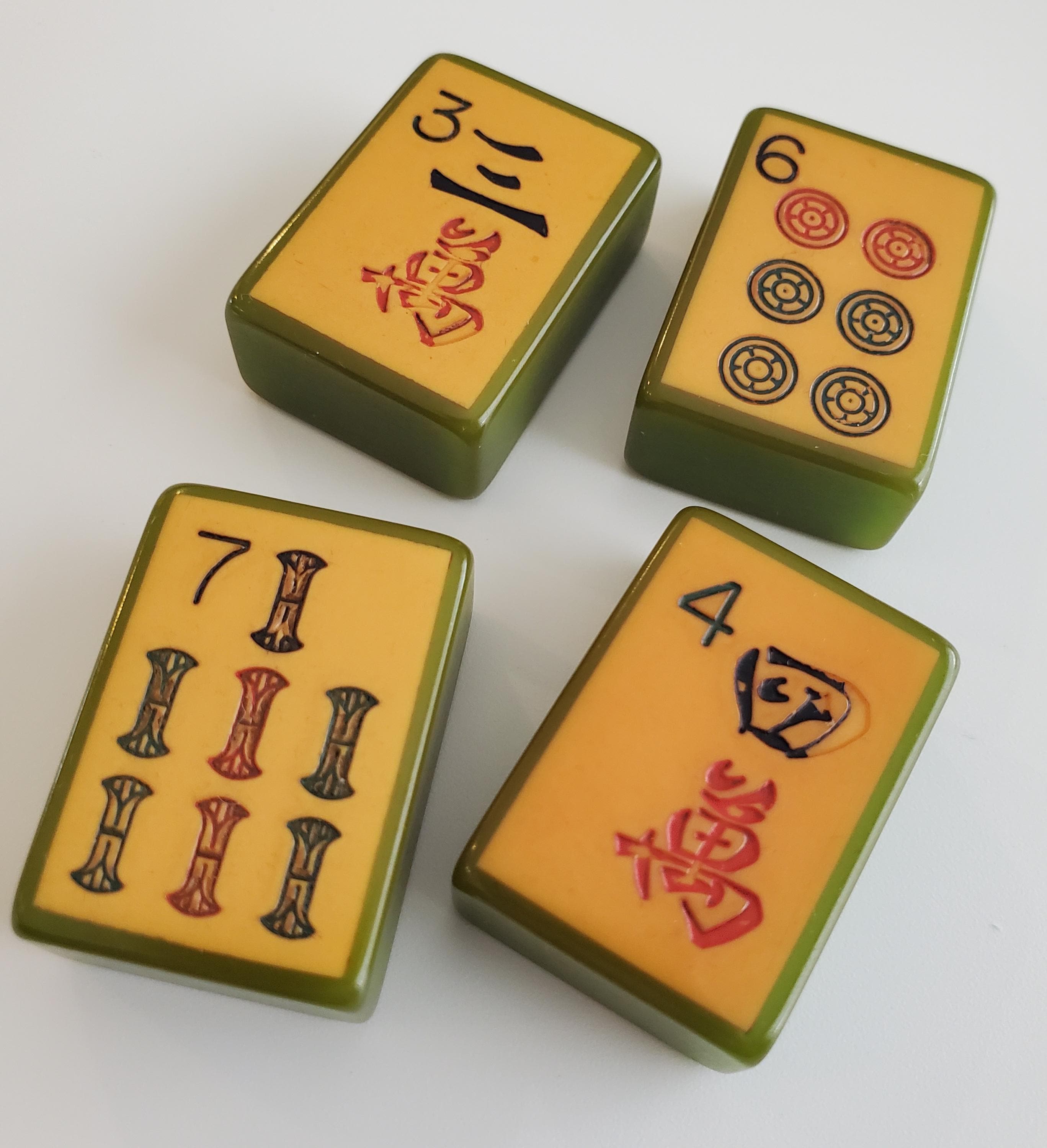 Green Enrobed Tiles, Set of Four Met Games Vintage Tiles, Orphans