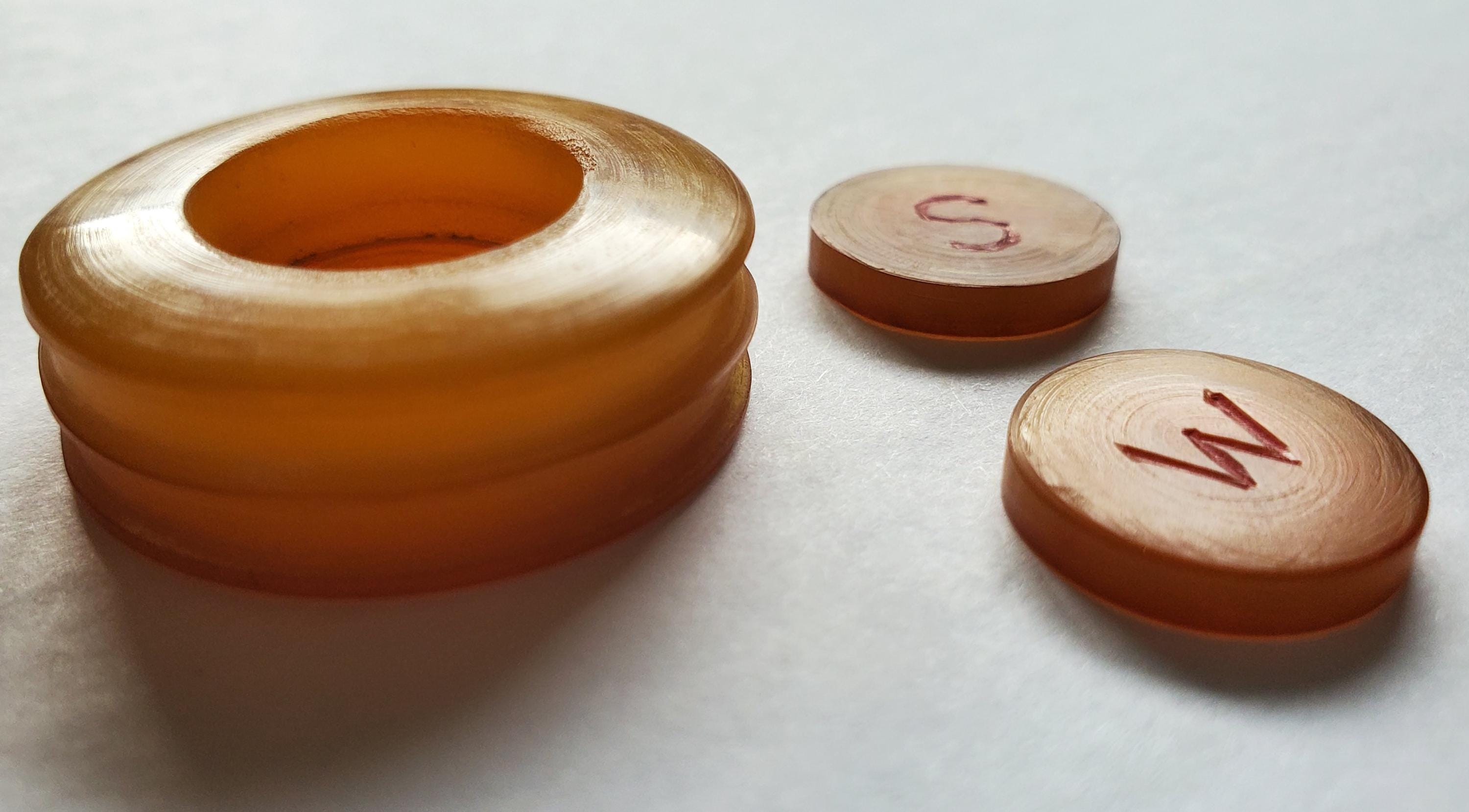 Translucent Apple Juice Resin Mahjong Wind Indicator Holder and Discs.