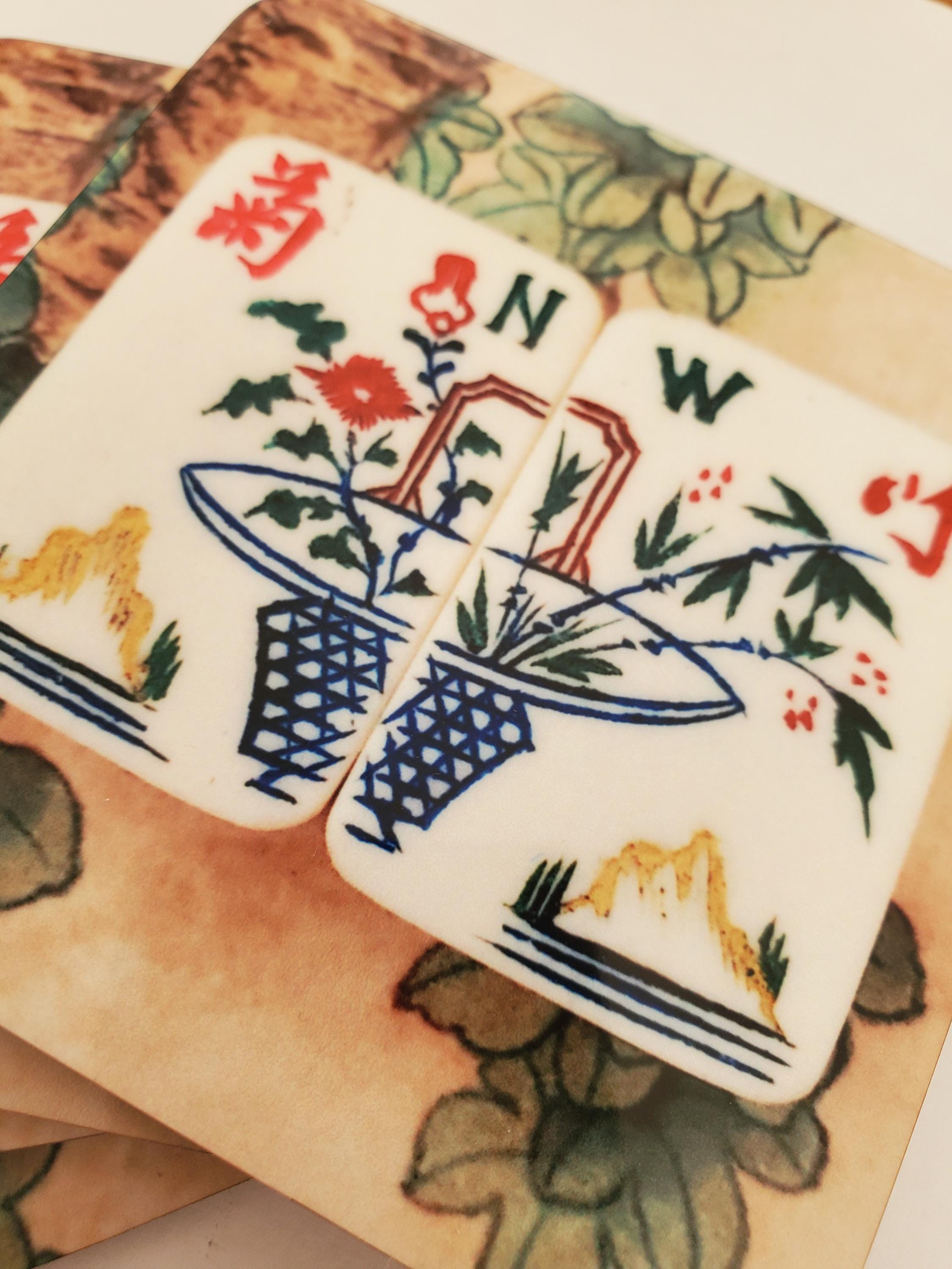 New, Set of Four, Mahjong Flower Tile Theme Design, Coasters