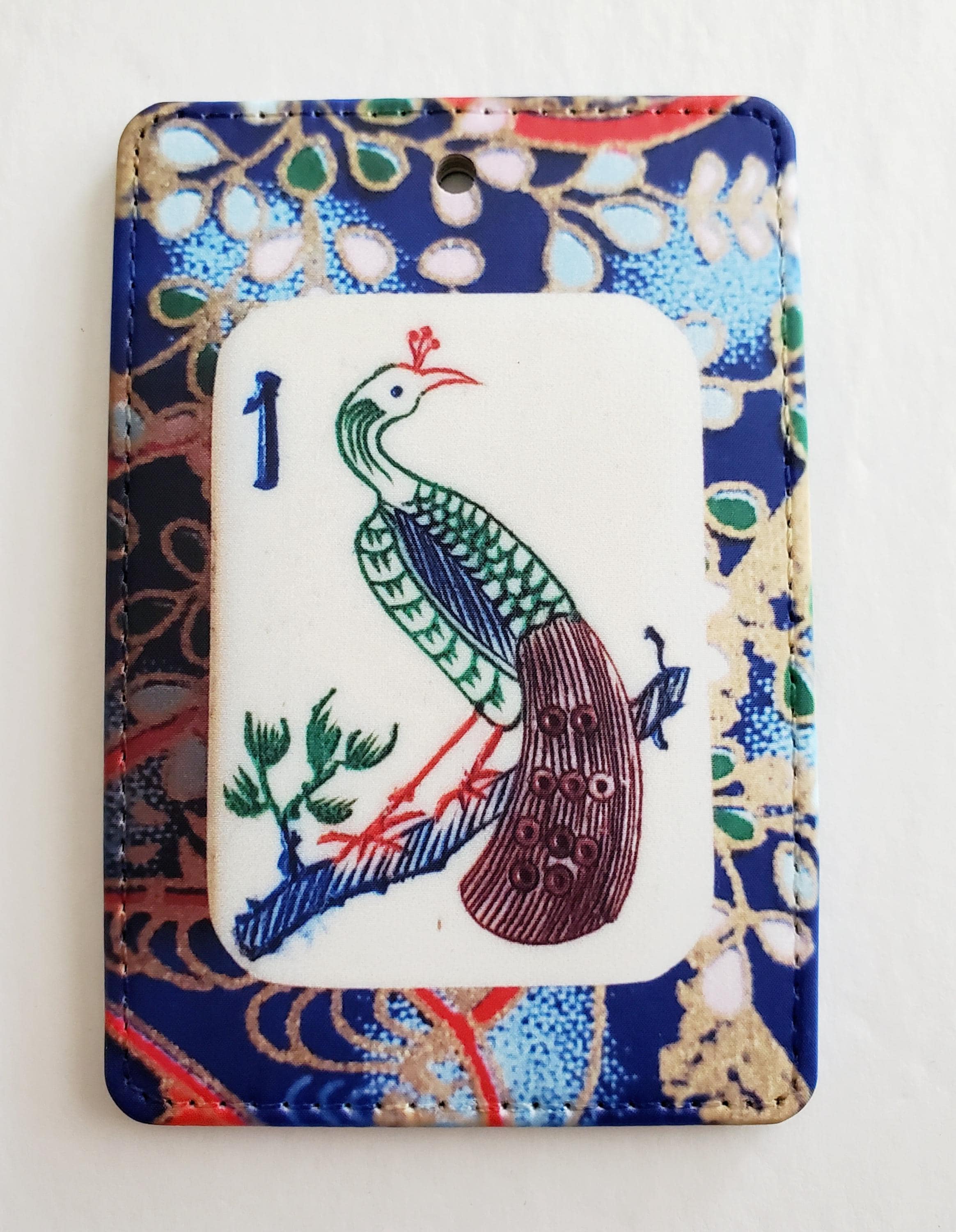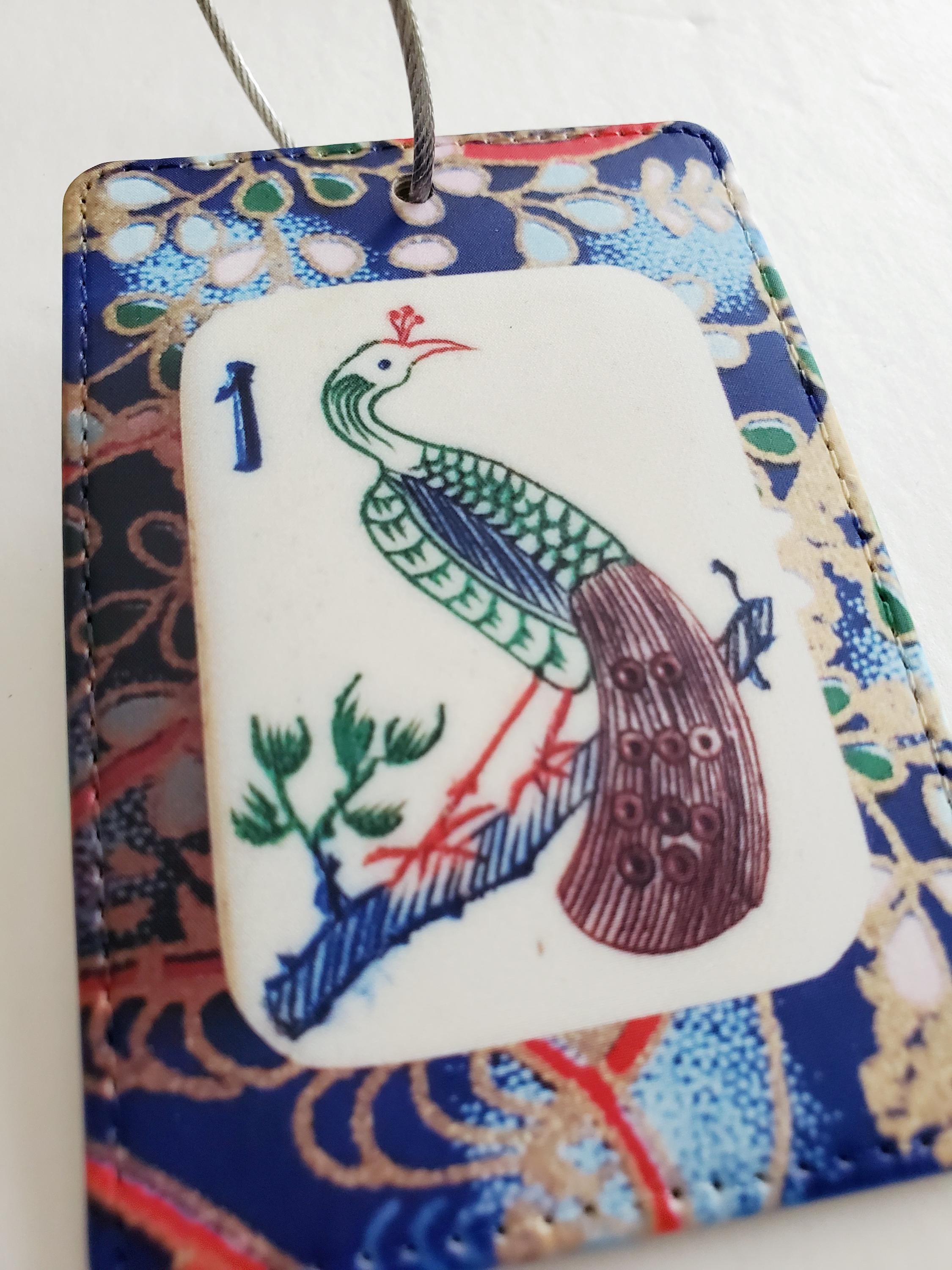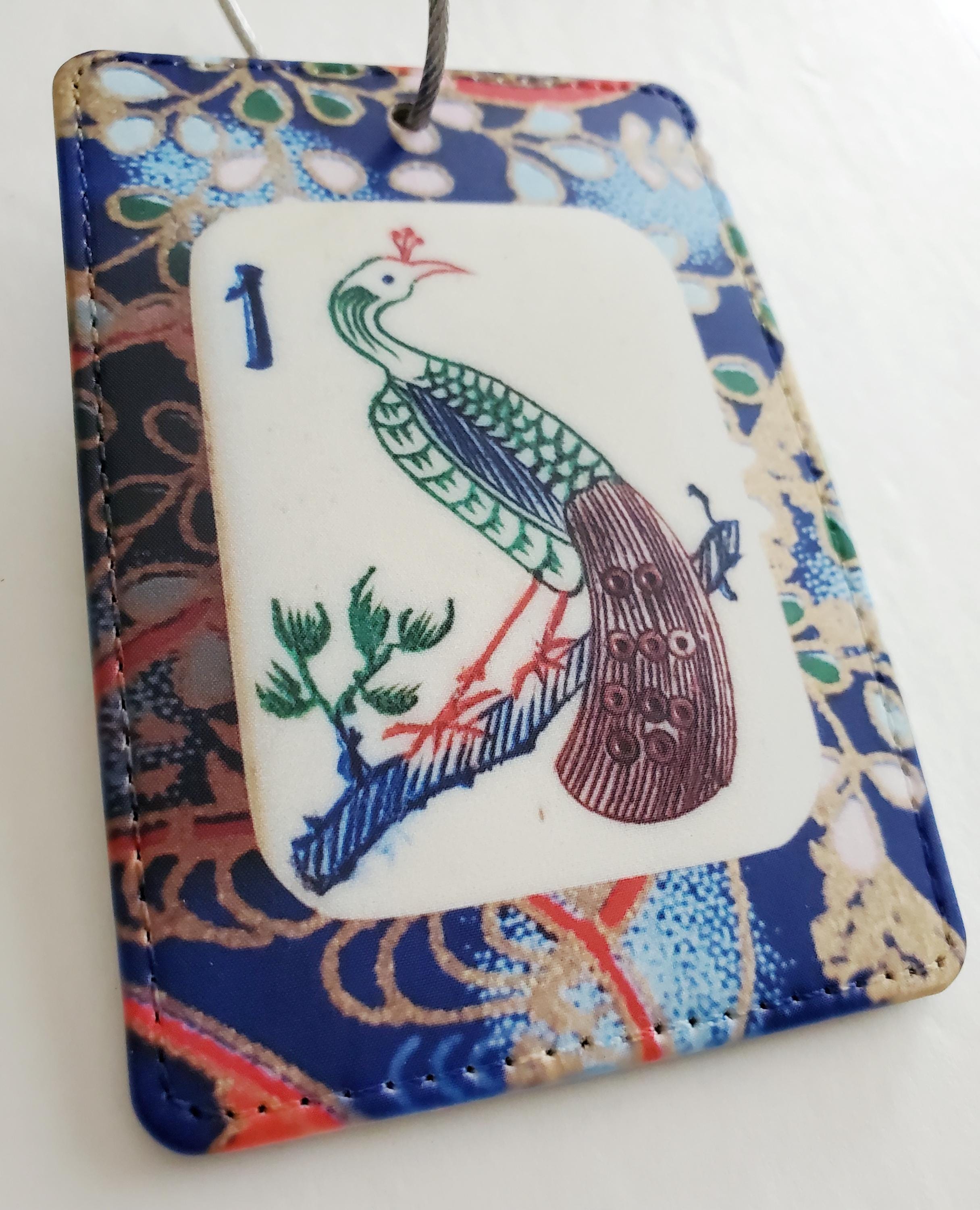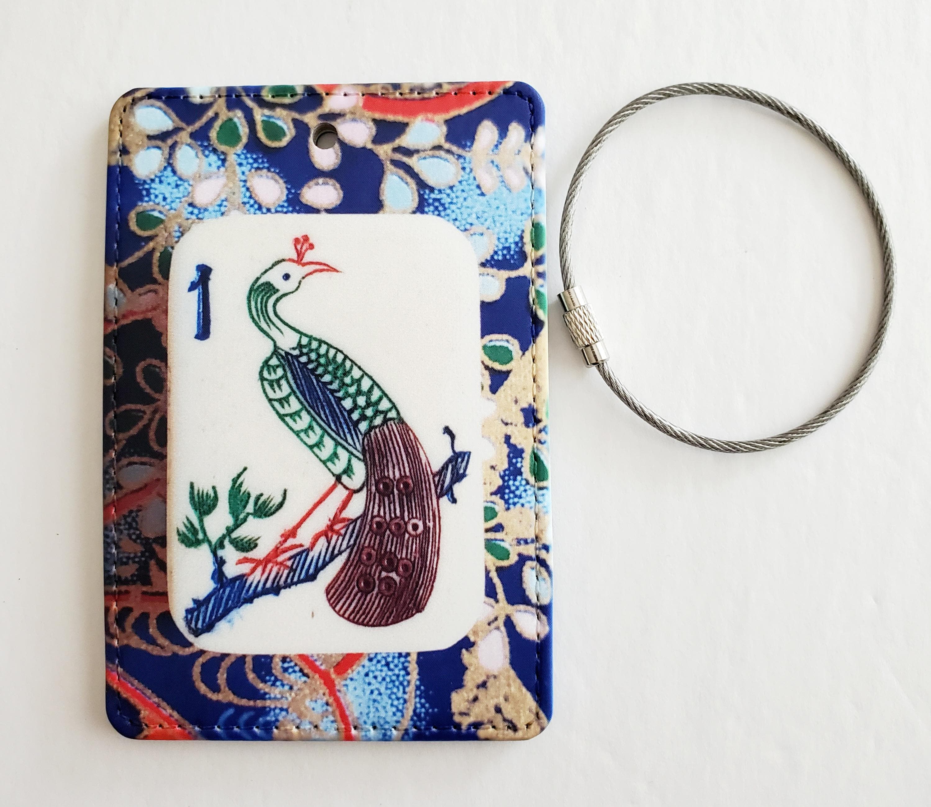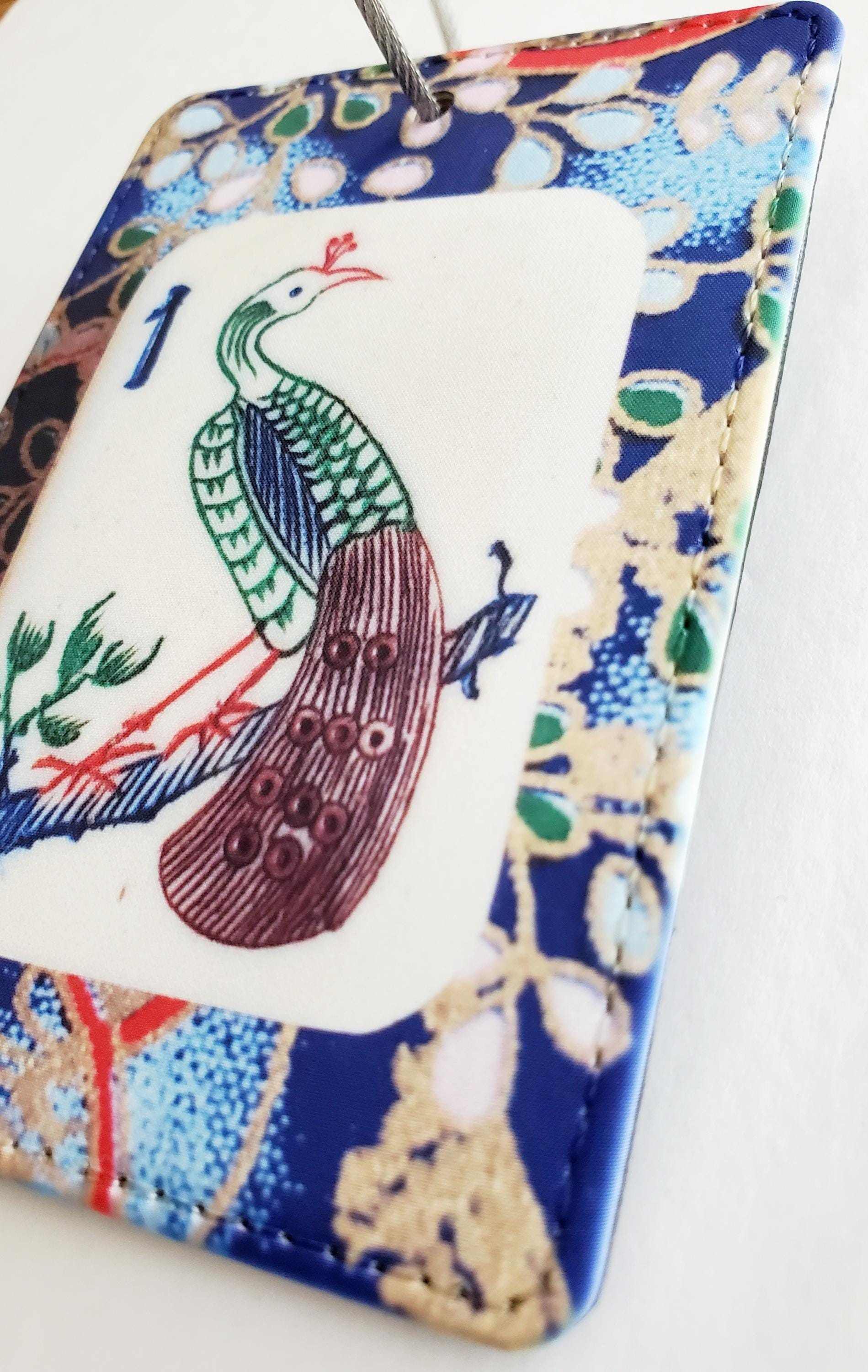 Luggage Tag with Metal Ring, One Bamboo Peacock Mahjong Tile Design